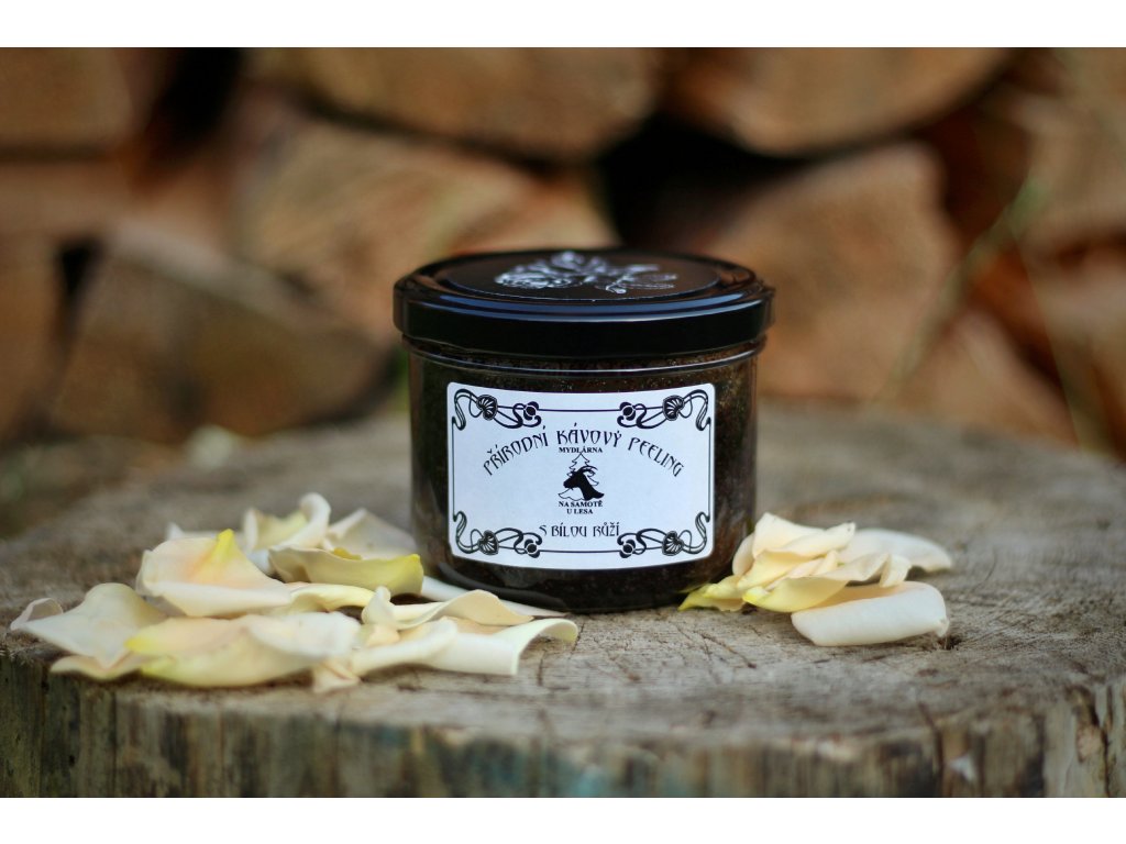 Ručně vyrobený přírodní peeling na tělo s jemnou a smyslnou esencí z bílé růže a luxusním makadamiovým olejem.