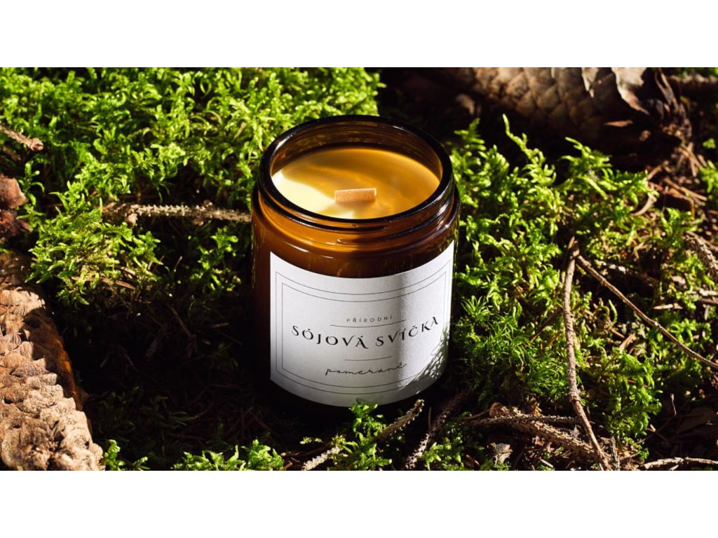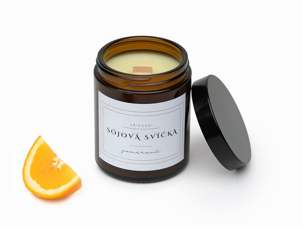 Ručně vyrobená přírodní svíčka ze sójového vosku a pomerančového esenciálního oleje